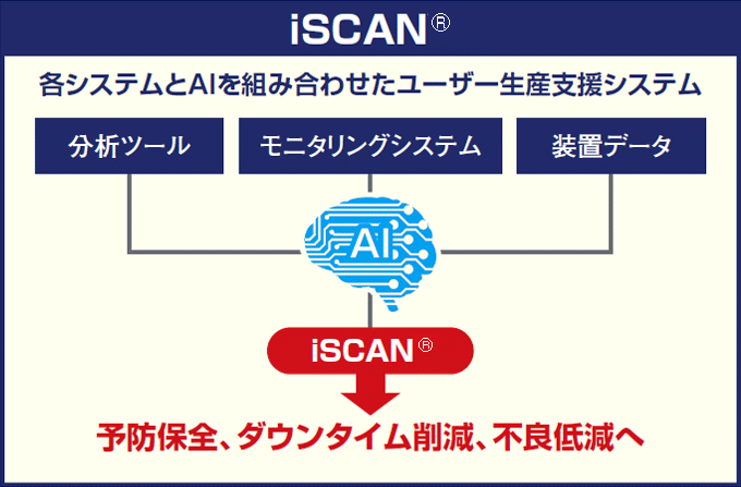 生産性向上、品質/歩留り改善のご要望にもお応えします。近年、AIを用いた生産支援システム(iSCAN®)の開発にも取り組んでいます。
